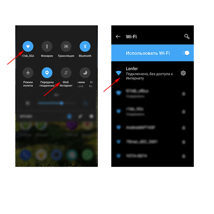 2. Отключите на смартфоне Мобильную передачу данных, зайдите в Настройки телефона и там - в раздел WiFi.